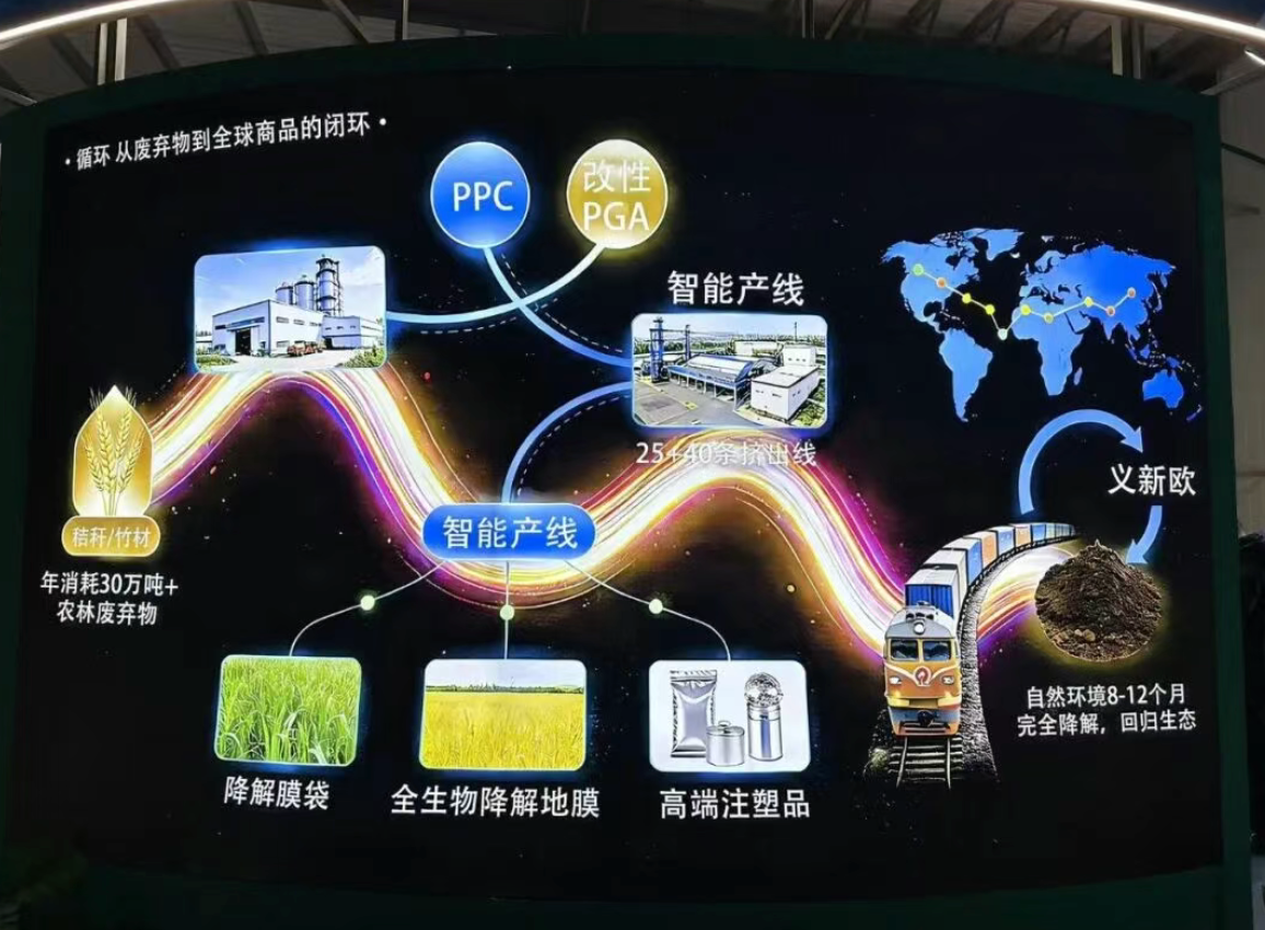 田间废弃物 → 工厂高值材料 → 绿色农资与包装 → 回归土壤与自然