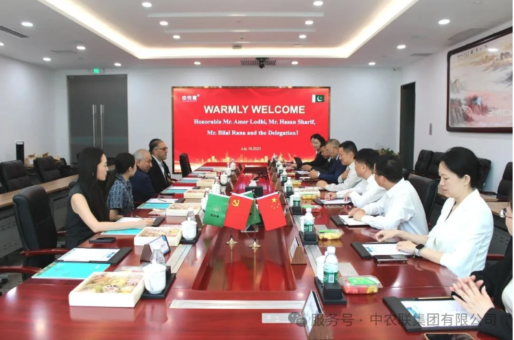 7月18日,巴基斯坦谢里夫家族hason sharif率商务代表团到访中农联集团总部,就双边贸易合作展开深入交流。
